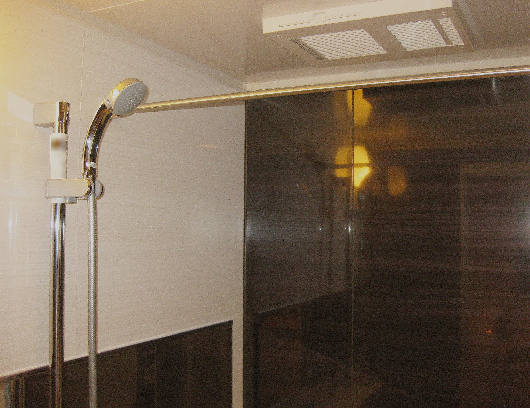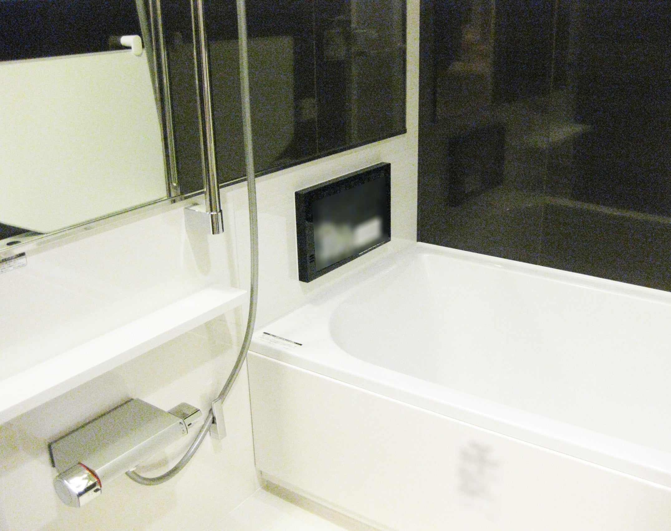 また、大型のテレビ付きの浴室も同じテイストで仕上げました。