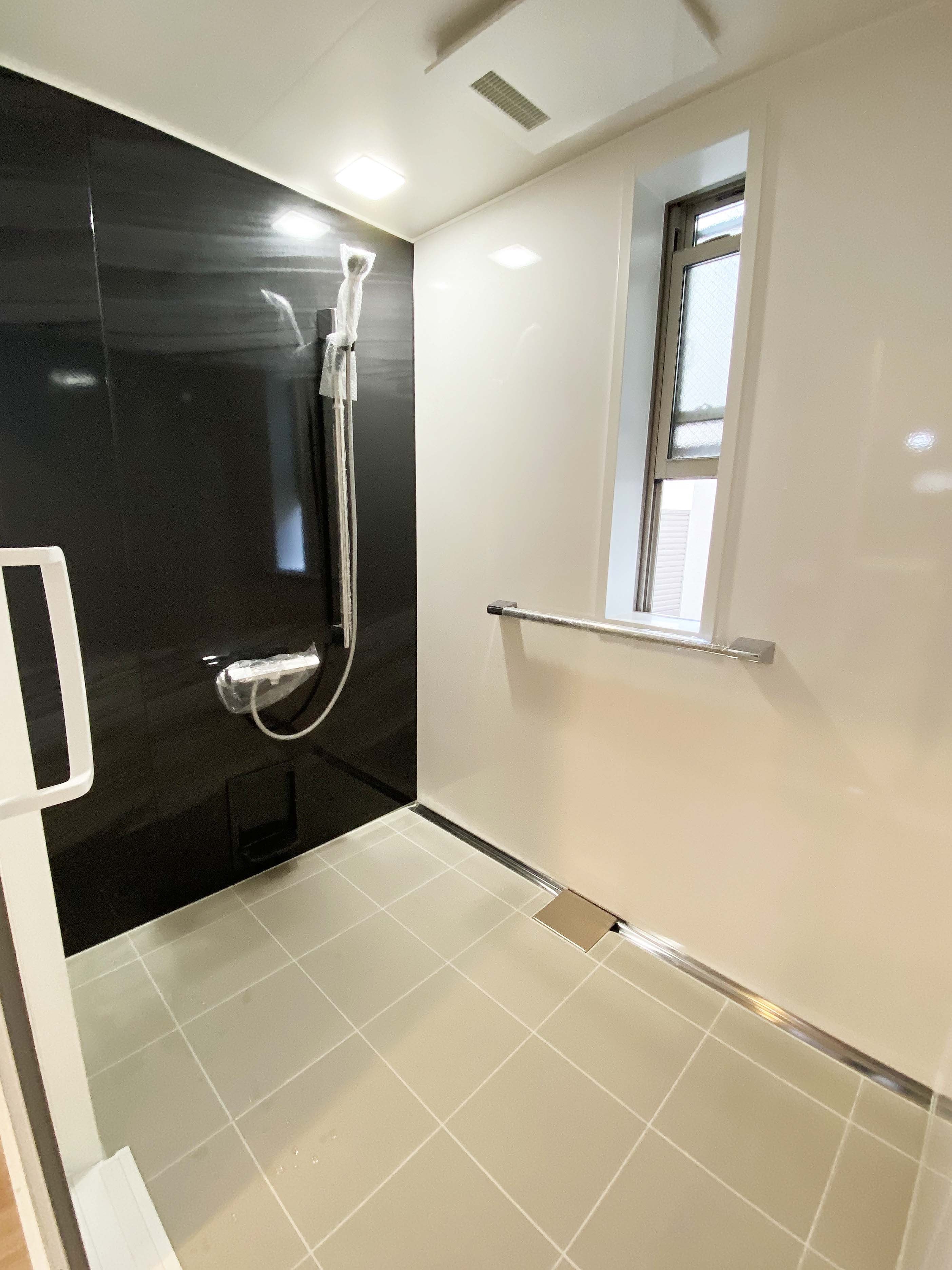 シャワールームと洗面台の新設をし、バリアフリーの床にすることで移動しやすい空間となりました。