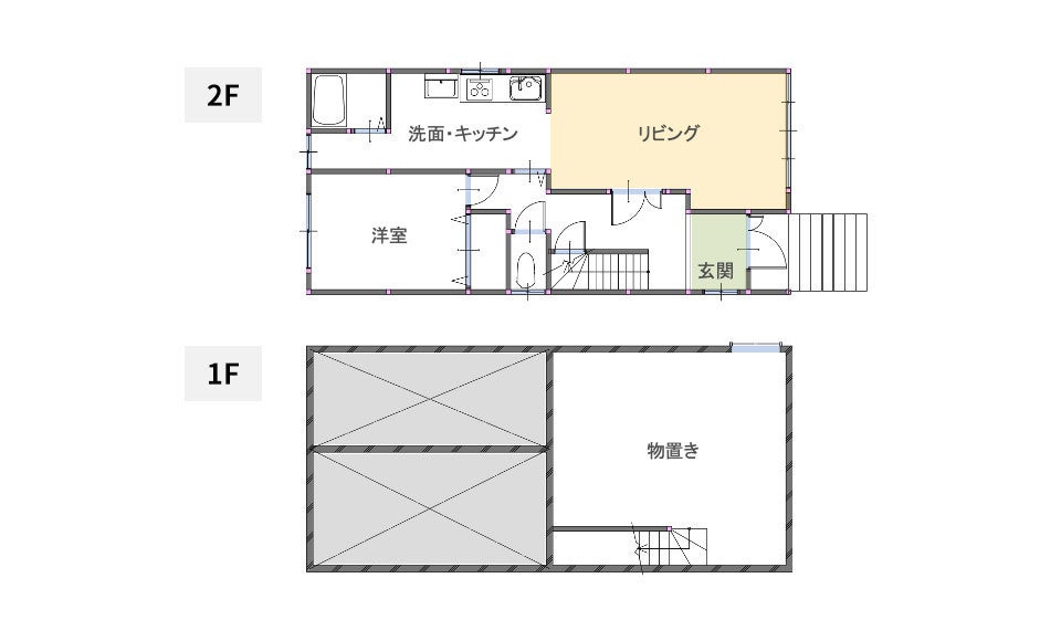 と考え、限られた空間を最大限使えるように玄関を1階に下ろし2階を広く確保する検討をしました。