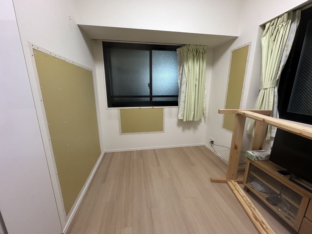 新しい石膏ボードをしっかりと固定できるよう、下地材を補強・作成しながら、次の工程へと進めていきます。